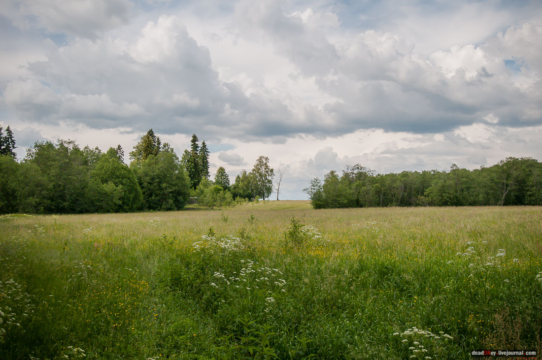 Здесь находилась старая усадьба Глебовых (деревянный барский дом с флигелем, хозяйственные постройки и конный завод), а за одиноким деревом проходит старая подъездная дорога со стороны Московского шоссе. | Усадьба ЗНАМЕНСКОЕ-РАЕК, Тверская область, Торжокский район - Летопись Русской Усадьбы