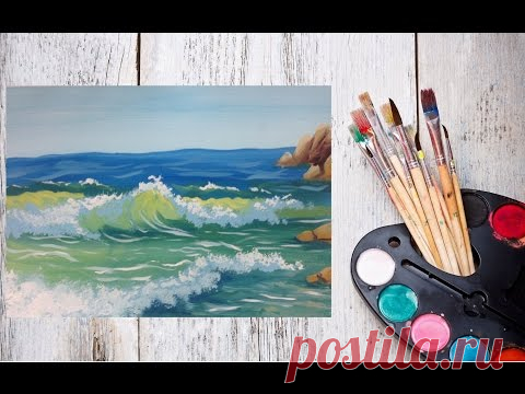 Видео урок Морские волны гуашью! Рисуем с Dari Art!