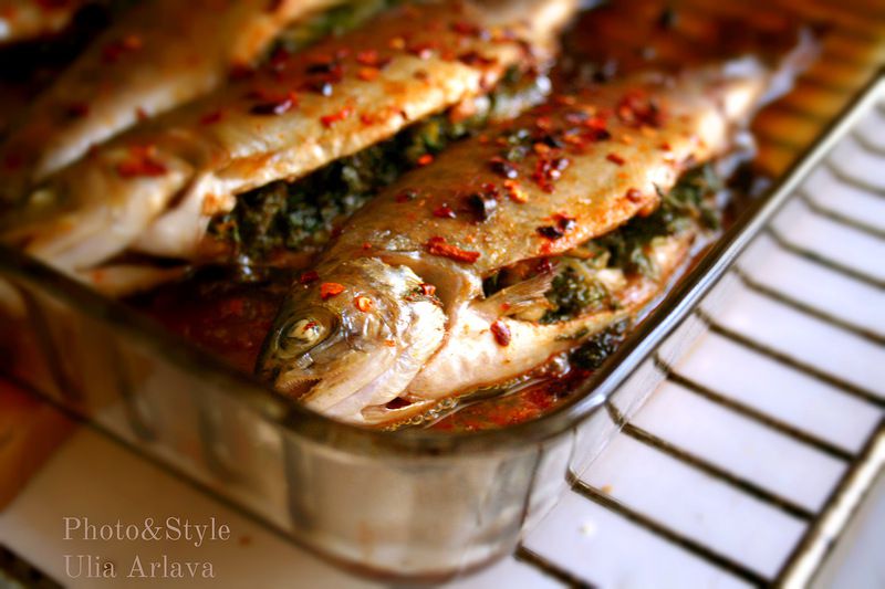 Форель, запечённая с ароматными травами (из абхазской кухни).