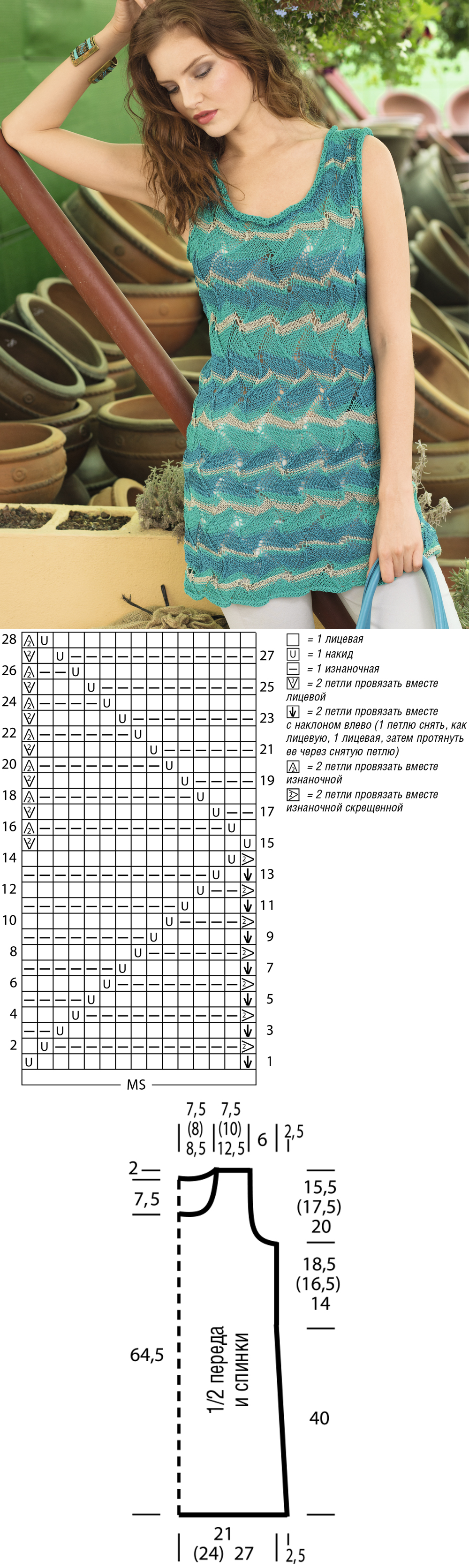 Туника в полоску с зубчатым узором - схема вязания спицами. Вяжем Туники на Verena.ru
