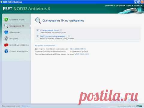 Запуск процедуры сканирования в ESET NOD32 (9/10)