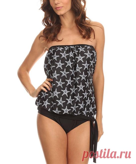 Daisy Black Star Bandeau Blouson Tankini Top & Bottoms | zulily
