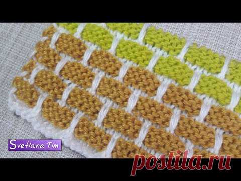 Узор спицами КИРПИЧИКИ (жаккард). Вязание спицами # 385 - YouTube