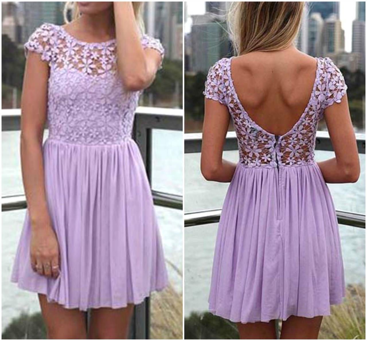 Симпатичные фиолетовый кружева и Цветочный дизайн Шифоновое Платье на Luulla