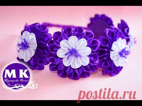 Мастер-класс Канзаши.Цветы из лент.Ободок для волос.