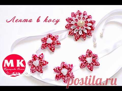 Мастер-класс Канзаши.Цветы Канзаши из атласных лент.Лента в косу/Kanzashi flowers from satin ribbons