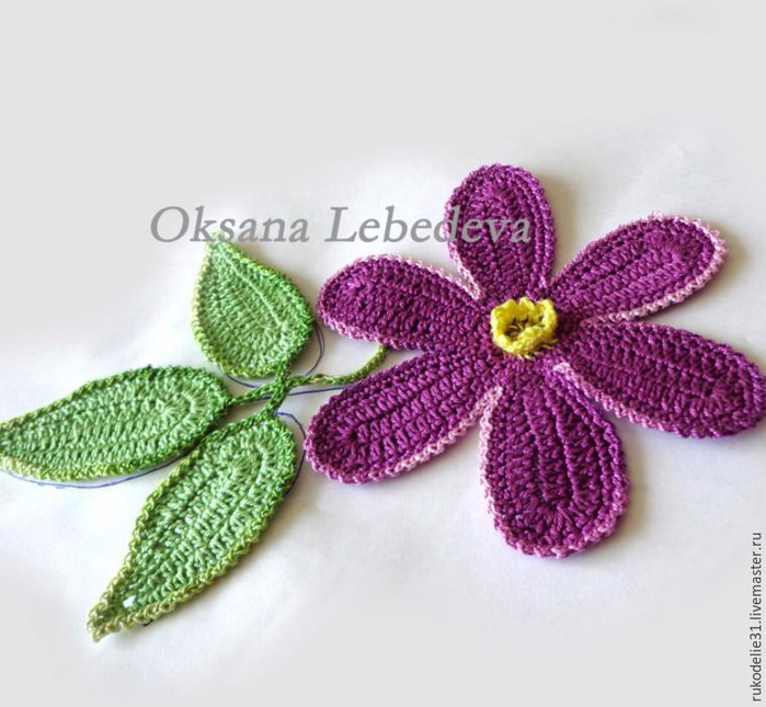 Вяжем крючком цветы и листья клематиса в натуральную величину