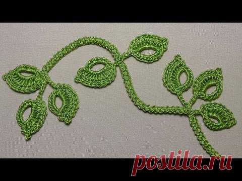 Вязание веточки листиков на шнуре гусеничка. Crochet leaf sprigs. Видео мастер-класс