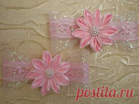 Красивый Бант с Цветком Канзаши Своими Руками. /DIY / Flowers /Tutorial. Make Hair Bow