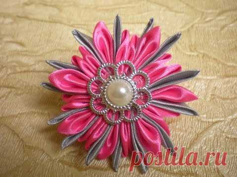 Красивый Цветок Канзаши - Резинка для волос из Лент 2.5 см. Своими руками. Kanzashi. DIY. Tutorial.