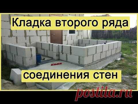 Кладка второго ряда, соединения стен пристройки и дома - YouTube
