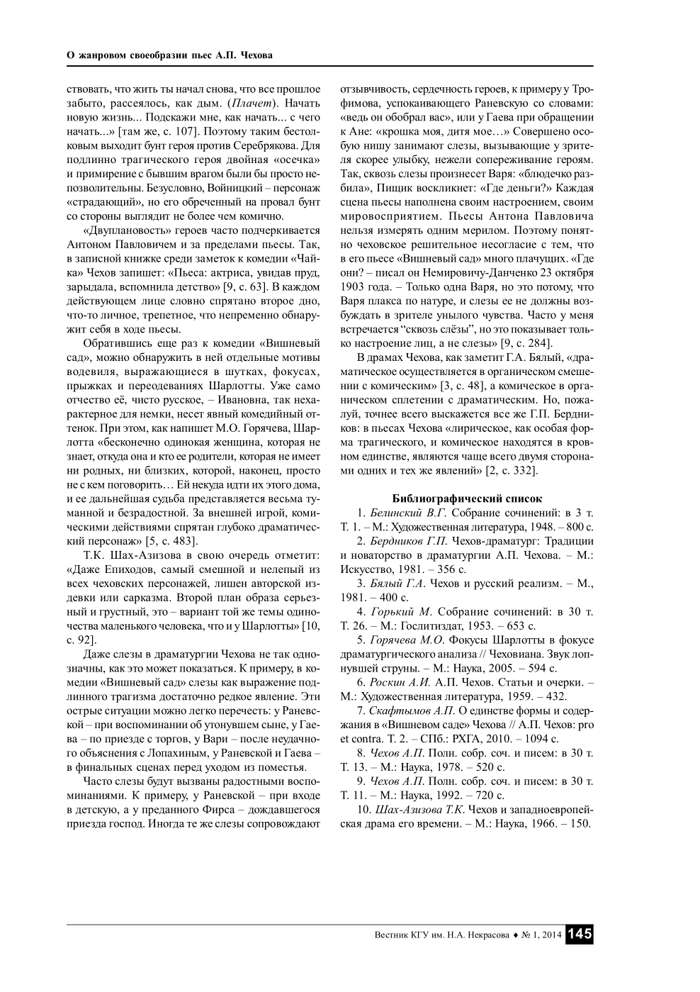 О жанровом своеобразии пьес А. П. Чехова - тема научной статьи по литературе, литературоведению и устному народному творчеству, читайте бесплатно текст научно-исследовательской работы в электронной библиотеке КиберЛенинка