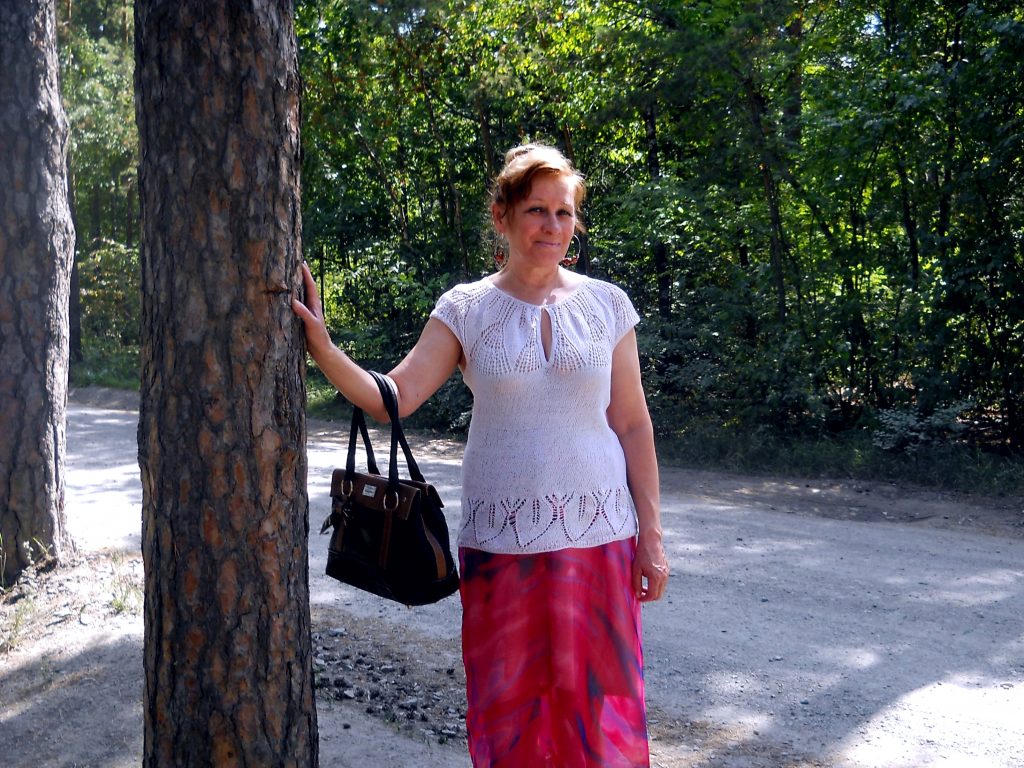 Белый топик с круглой кокеткой | Блог Натальи Ивченко. Вязание спицами и крючком