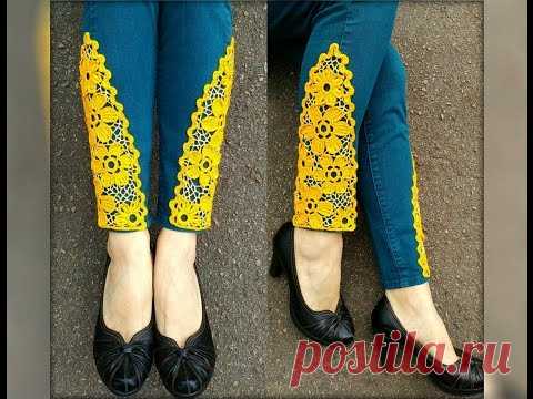 Ирландское кружево на джинсах.Нерегулярная сетка.Irish lace on jeans.