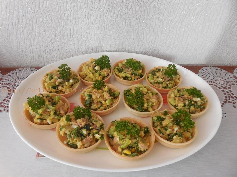 САЛАТ С ПЕЧЕНЬЮ ТРЕСКИ В ТАРТАЛЕТКАХ ОТ ЛАРИСЫ ТРЕТЬЯКОВОЙ