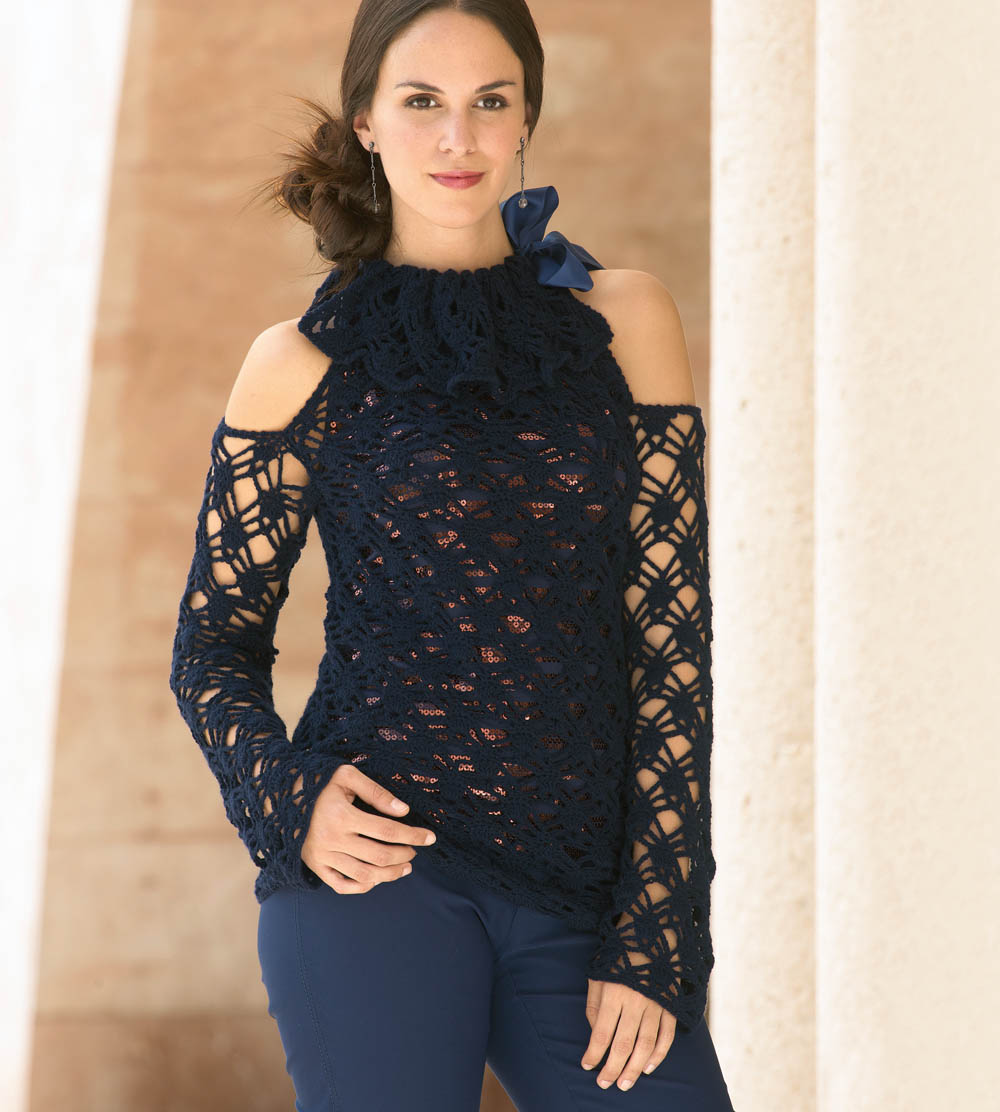 Пуловер с открытыми плечами - схема вязания крючком. Вяжем Пуловеры на Verena.ru