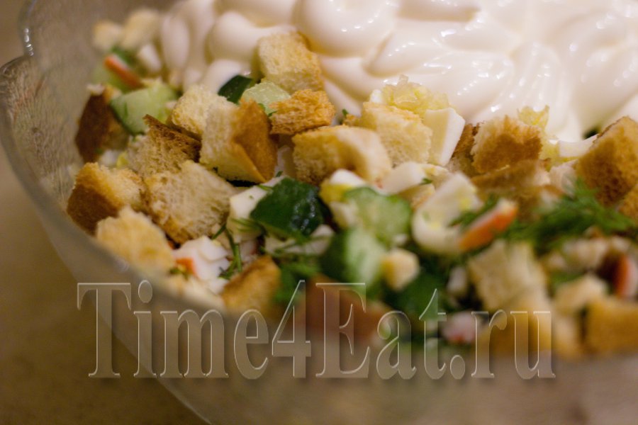 Салат с курицей, крабовыми палочками и сухариками | Пора перекусить!