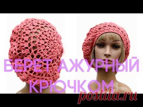 Летний берет крючком Ажурный женский берет 1 часть Виктория Исакина