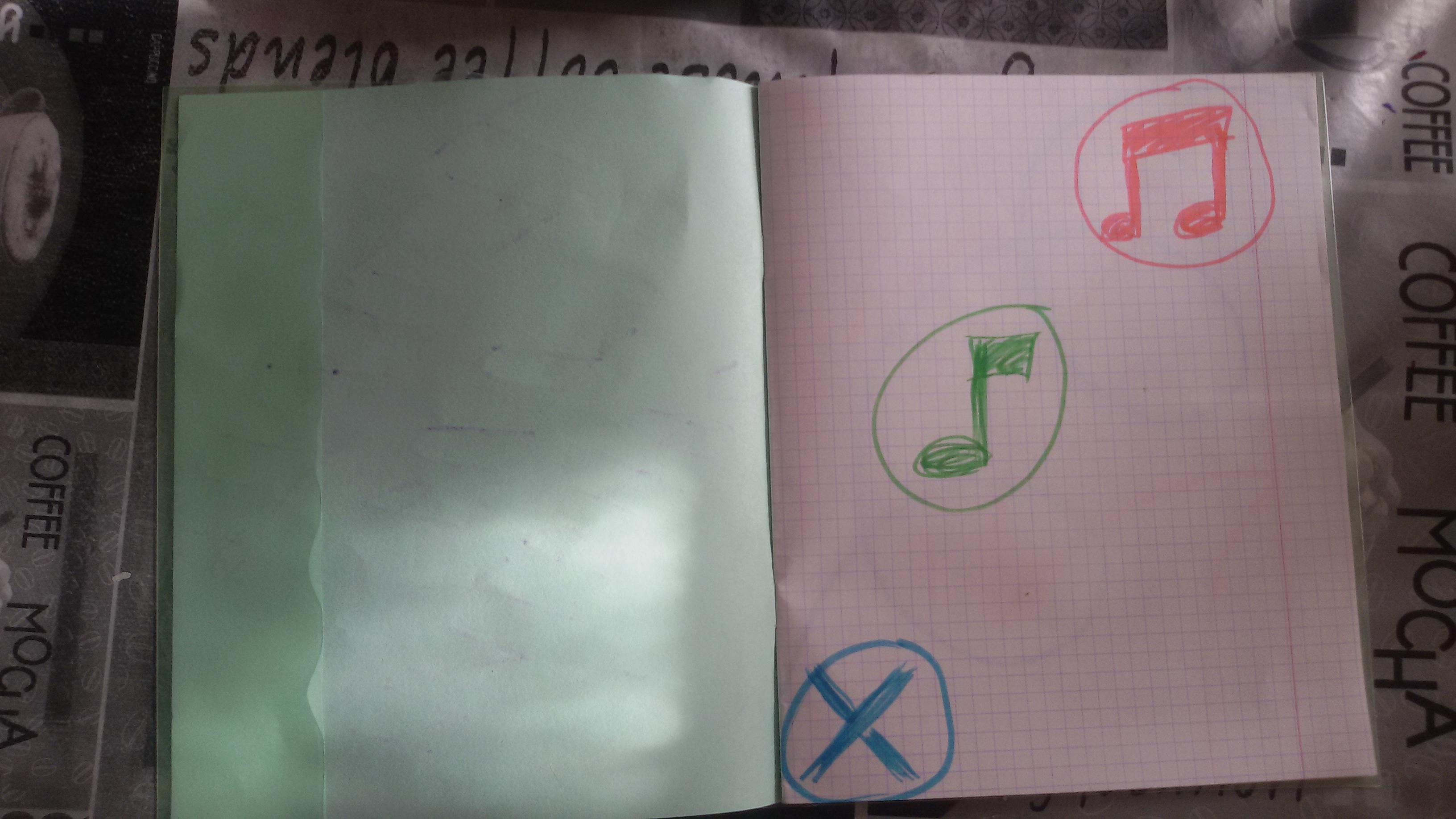 данный рисунок помогает в развитии голоса для детей с КИ!(кохлеарным имплантом)или слуховым аппаратом!так же подойдет для обычного ребенка .данный рисунок можно изменять под себя тут приведен немного в усложненной форме каждая нота одинакового размера но разного цвета вы можете сделать первую ноту большой этот значит ГРОМКО!вторая меньше это значит ТИХО и крестик означает ,что звука нет!