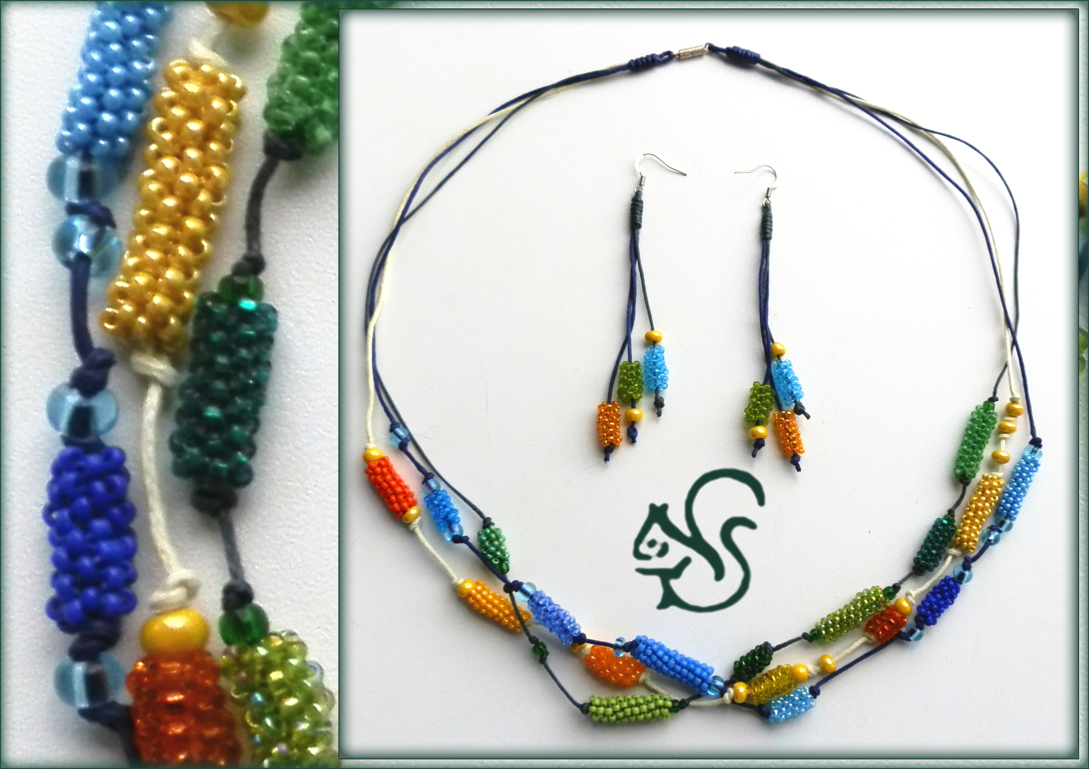 Образец. Комплект (серьги, подвеска). Шнур, бисер, бусины, фурнитура