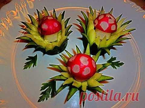 Украшения из овощей! Карвинг огурца и редиса! Decoration of vegetables. Carving radish and cucumber. - YouTube