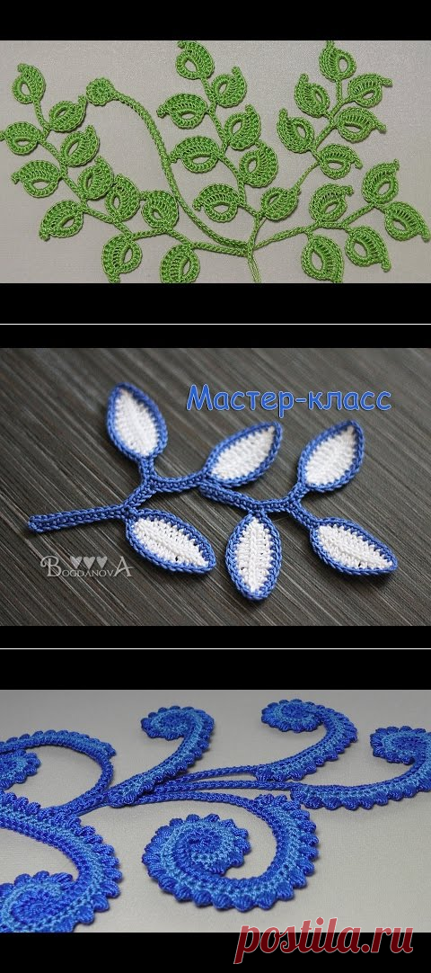 Урок вязания крючком. КАК ВЯЗАТЬ ВЕТОЧКУ ЛИСТИКОВ.Ирландское кружево. Irish lace. - YouTube