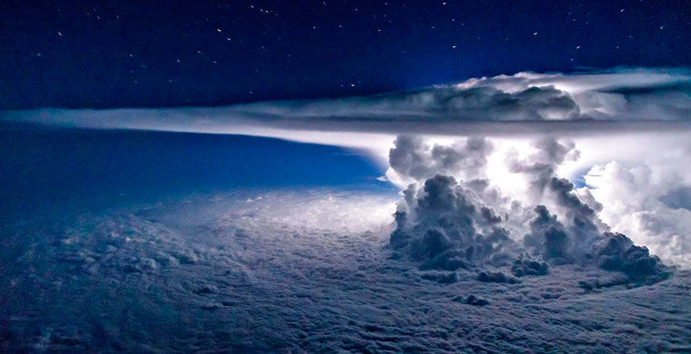 Летчик сфотографировал штормовое облако в момент удара молнии / Новости / Моя Планета