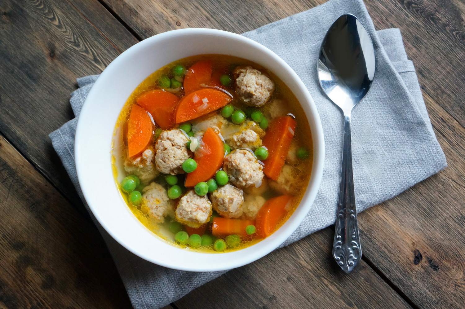 Прозрачный суп с куриными фрикадельками