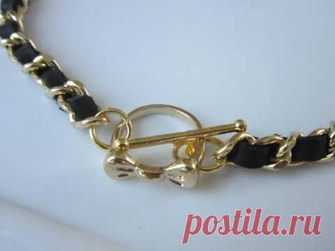 Juicy Couture Style Leather & Chain Necklace . DIY . Колье из цепочки и кожаной ленты .