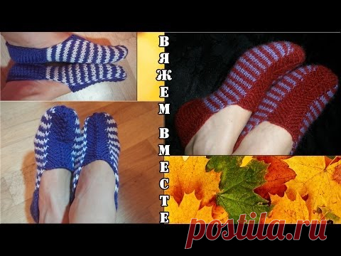 Вязаные тапочки спицами, без швов. Knitted slippers.