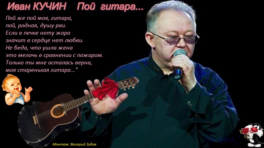 С большой радостью приглашаю посмотреть мою новую видео композицию на песню " Пой гитара.." в исполнении Ивана Кучина. Вот ссылка на YouTube(ЮТУ) по адресу: https://www.youtube.com/watch?v=Ek5HJzQq_Bw&feature=youtu.be А это мой канал https://www.youtube.com/user/zubovval1