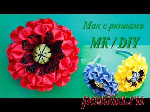 Мак с Рюшами. Праздничный Ободок / Poppy ruched. Holiday Headband