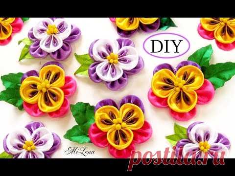 DIY Pansies / Анютины глазки из атласной ленты, МК / DIY Kanzashi flowers