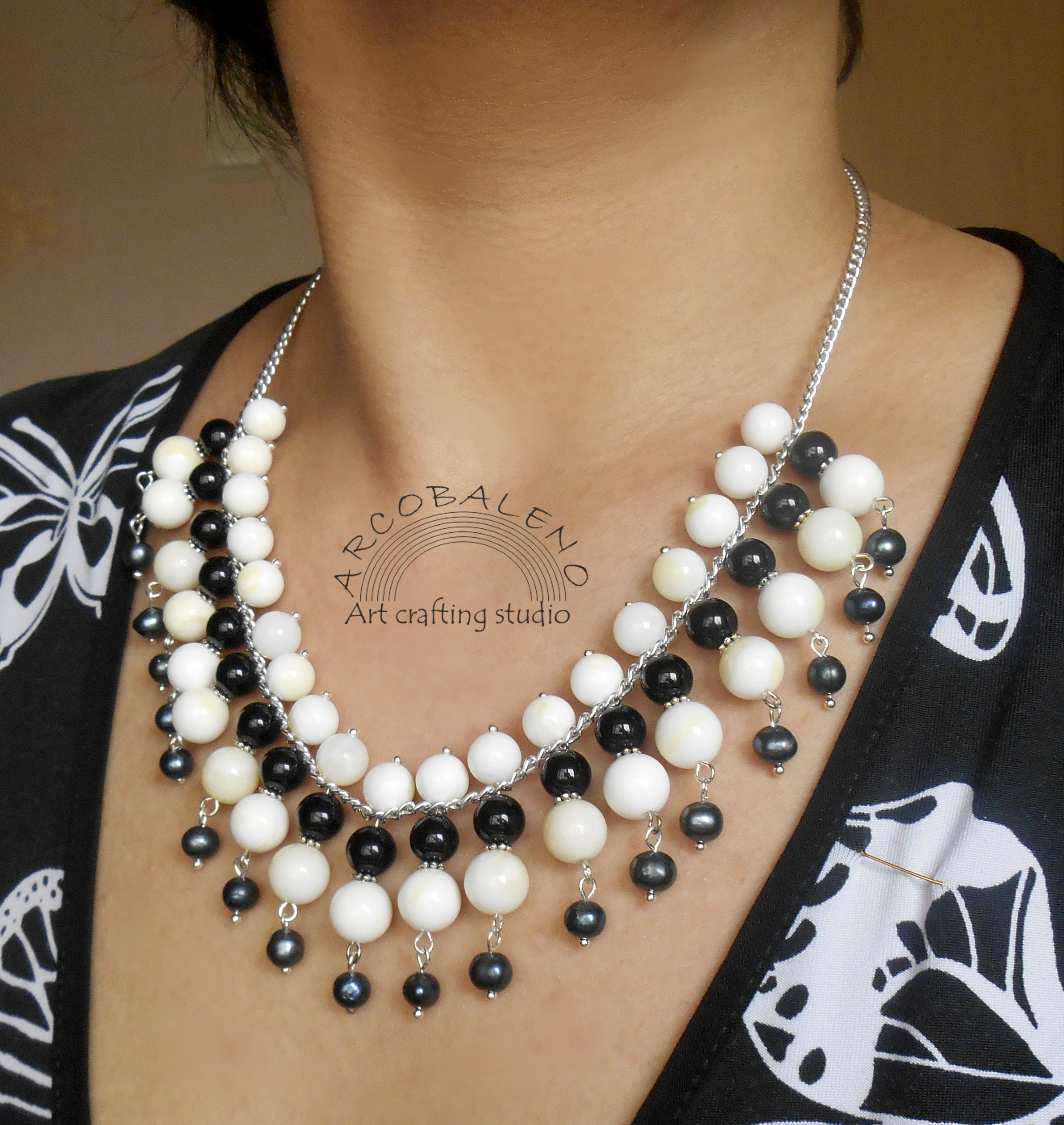 Колье из натуральных камней. Перламутр, Агат, Жемчуг.