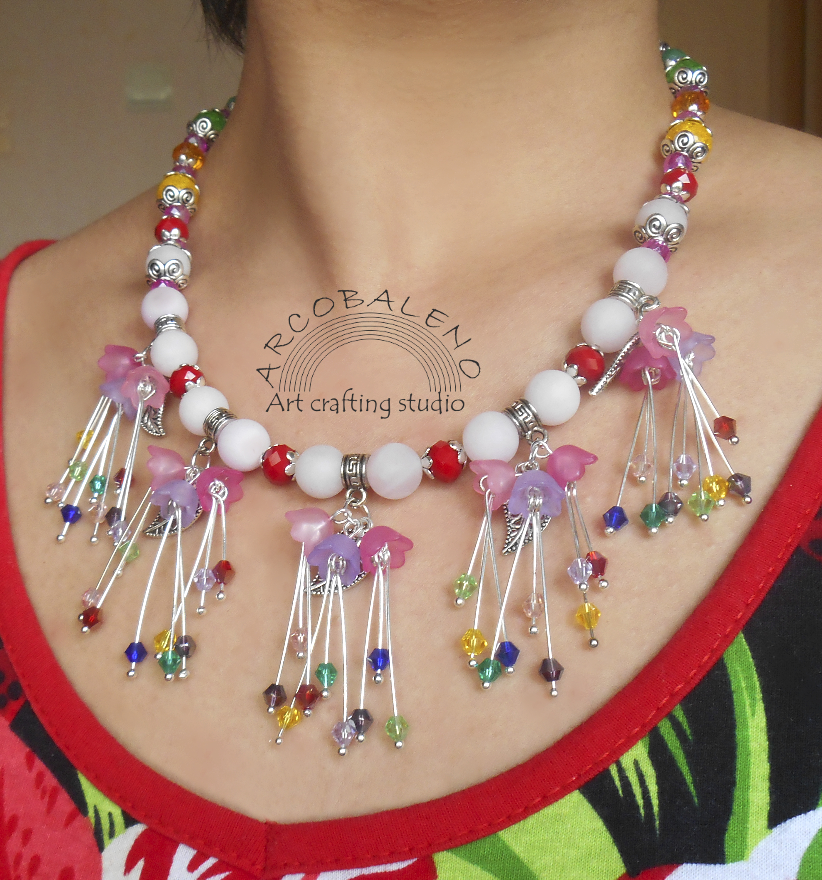 Яркое, позитивное, летнее колье! Кальцит, Хрусталь,  акрил