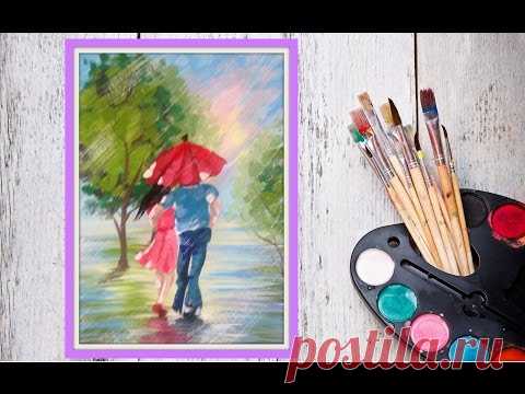 Уроки рисования! Как нарисовать парочку под зонтом гуашью! #Dari Art
