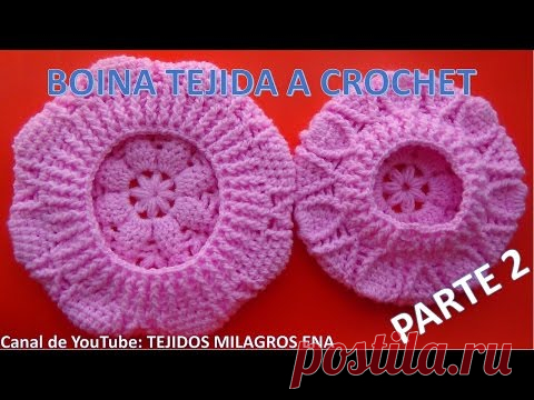 Boina tejida a crochet PARTE 2 en punto hojitas