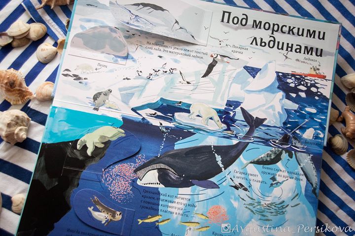 Несколько любопытных фактов о животных Арктики из книги "Вокруг света. Над землей и под землей" ( - В толще морского льда есть отверстия - отдушины, через которые тюлени дышат воздухом во время подводной охоты. - Гренландский кит питается крилом (крошечные рачки, похожие на креветок), отцеживая его из воды с помощью китового уса - громадных пластин в пасти. - Гагарка умеет и летать, и плавать.