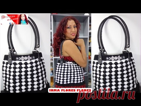 CARTERA ELEGANTE EN BLANCO Y NEGRO TEJIDO A CROCHET PASO A PASO