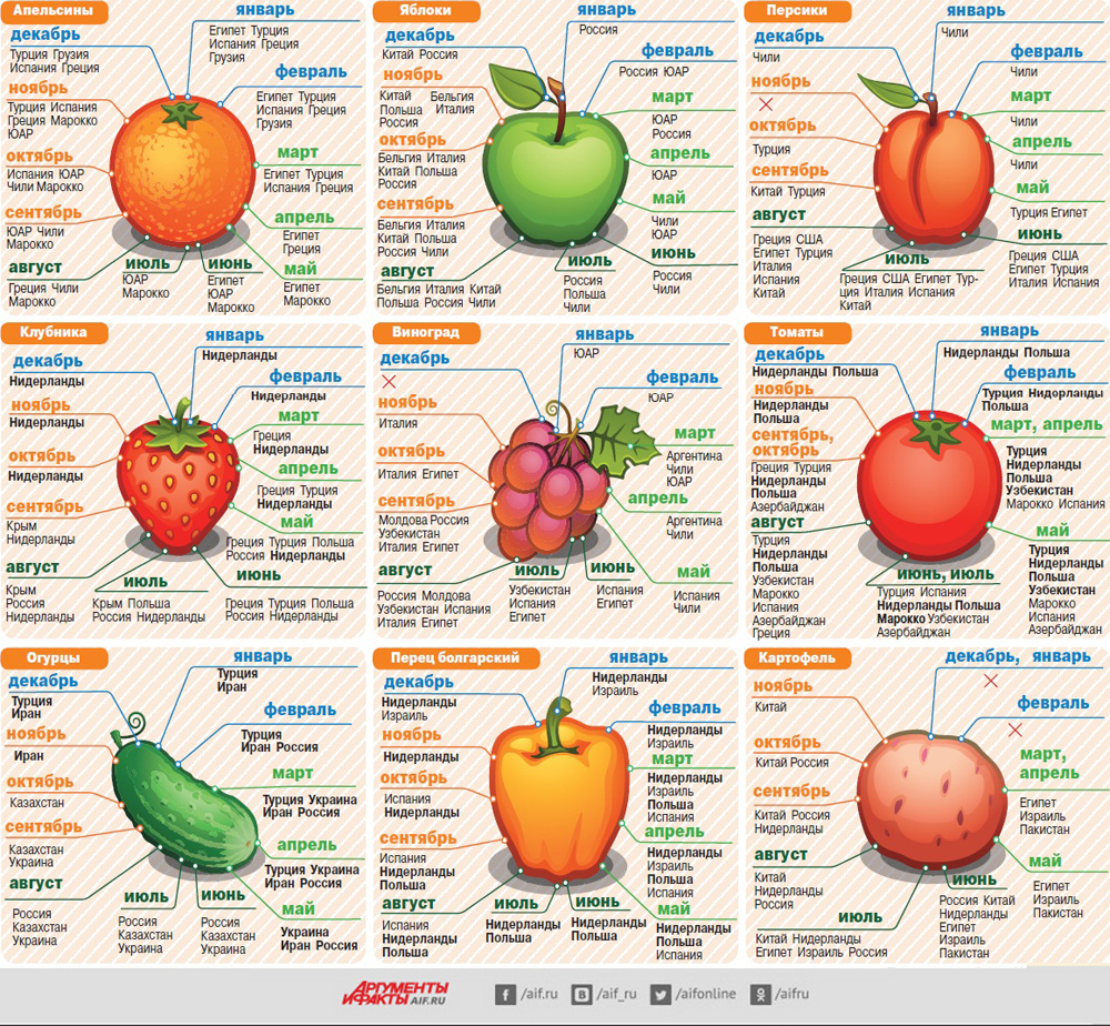 Когда созревают овощи и фрукты в разных странах? Инфографика | Инфографика | Аргументы и Факты
