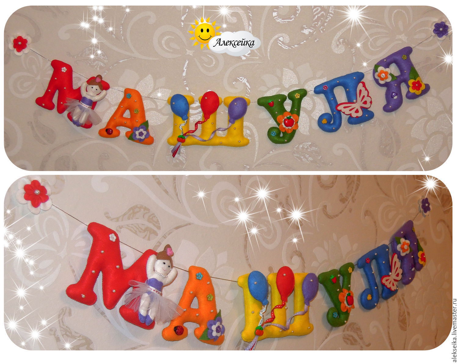 Купить Именная гирлянда из фетра - именная гирлянда, имя из фетра, буквы из фетра, гирлянда из фетра