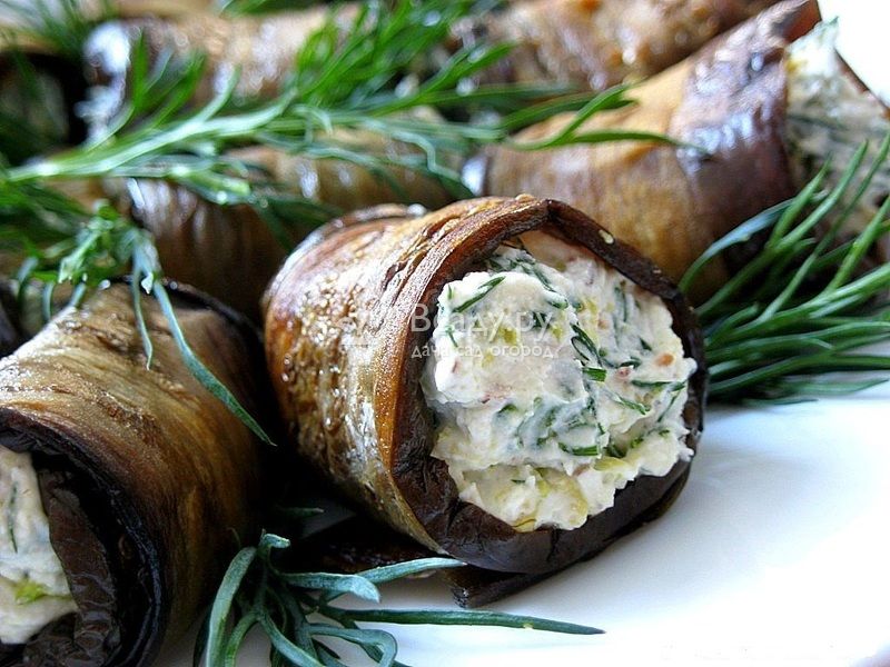 Рецепт приготовления рулетиков с чесноком и сыром из баклажанов