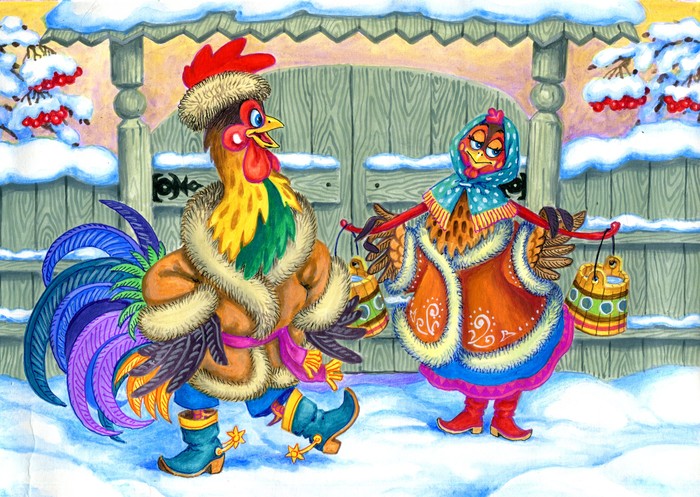 Петух и курица картинки - Картинки с символом 2017 года - Открытки с Новым годом 2017