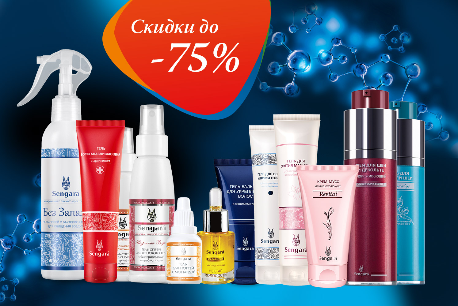 НАУКА НА СТРАЖЕ ВАШЕЙ КРАСОТЫ! АКЦИЯ КАТАЛОГА №11))))) Линия Sengara – это инновационная система косметического ухода, основанная на многолетнем опыте работы и блестящих научных открытиях. Средства запускают и поддерживают различные механизмы омоложения. Ваша кожа, ногти, волосы будут выглядеть безупречно! По акции каталога №11 приобретайте косметику Sengara со скидкой до 75%!