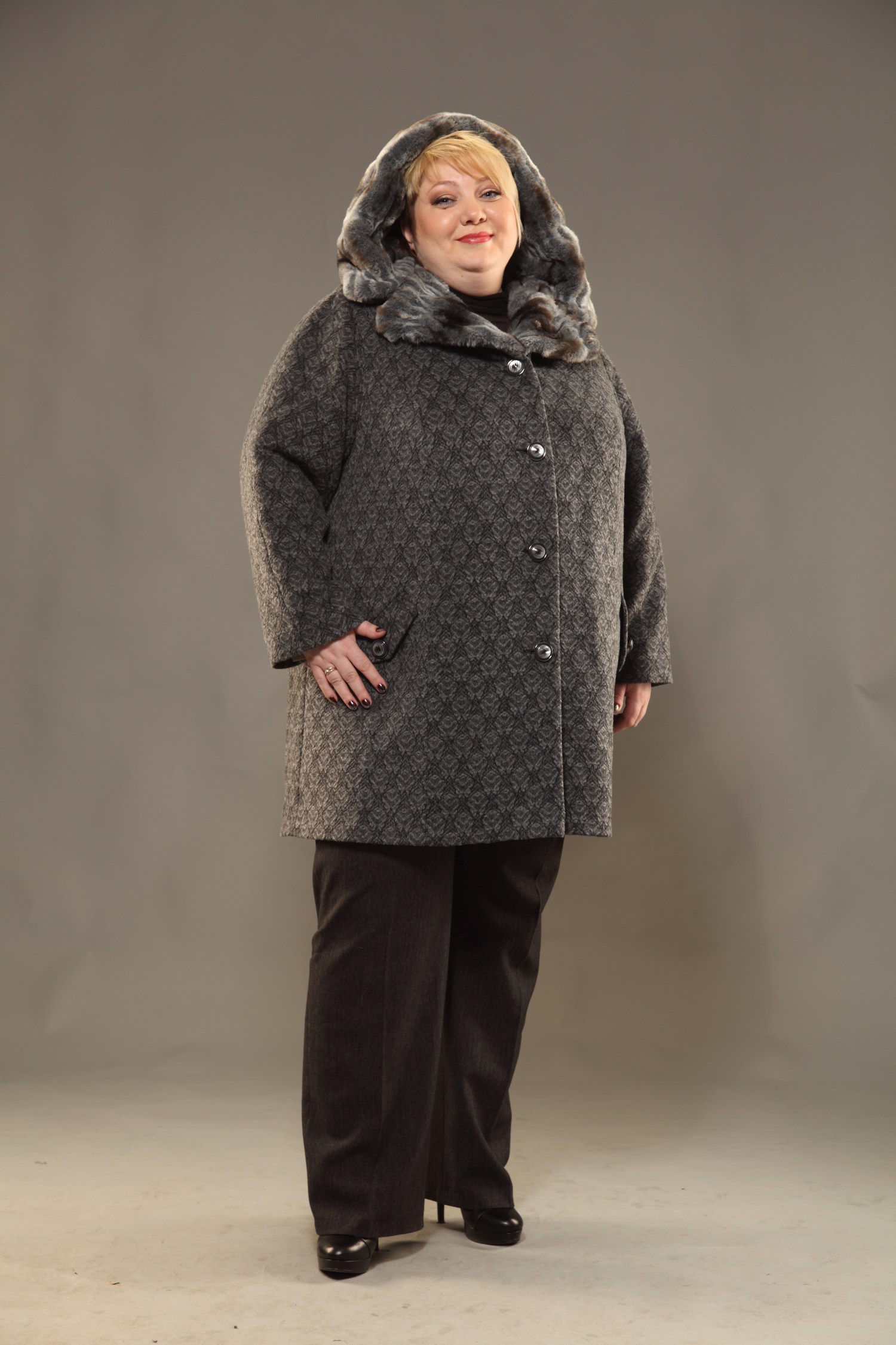 Пальто средней длины большого размера, модель 51205 | Фабрика Тревери