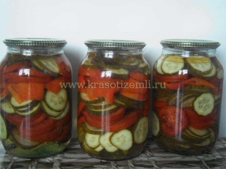 Консервированный салат из огурцов, помидоров и сладкого перца на зиму
