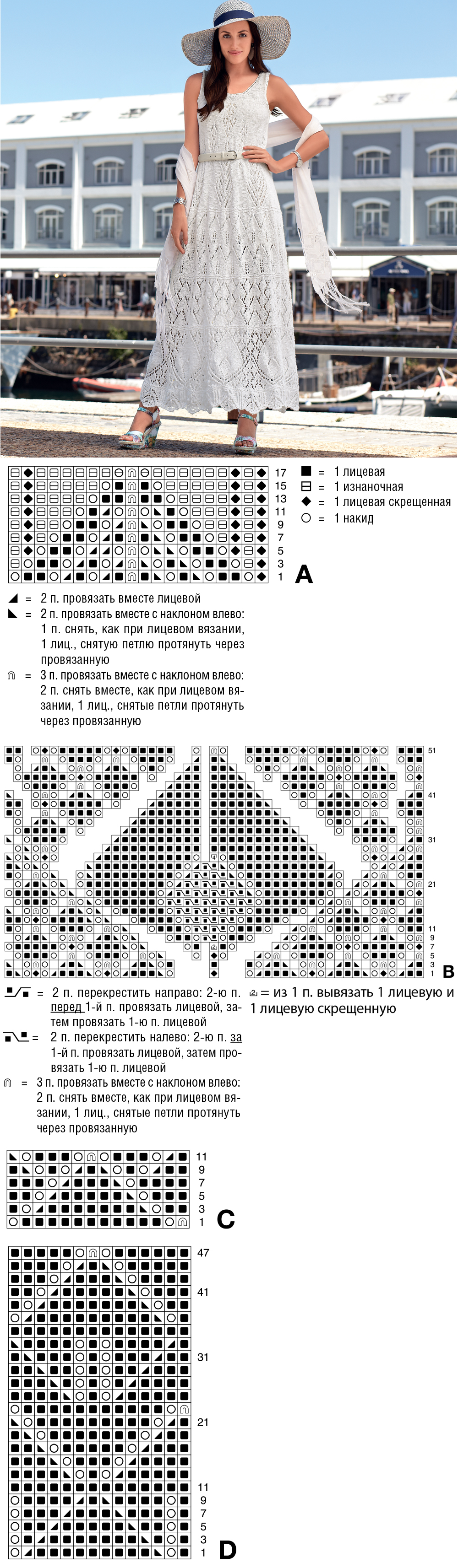 Платье макси с ажурным узором - схема вязания спицами. Вяжем Платья на Verena.ru
