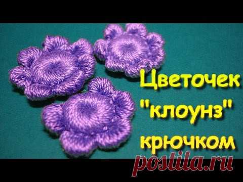 Ирландское кружево. Цветочек с столбиками "клоунз" крючком - Floret crochet in Irish lace