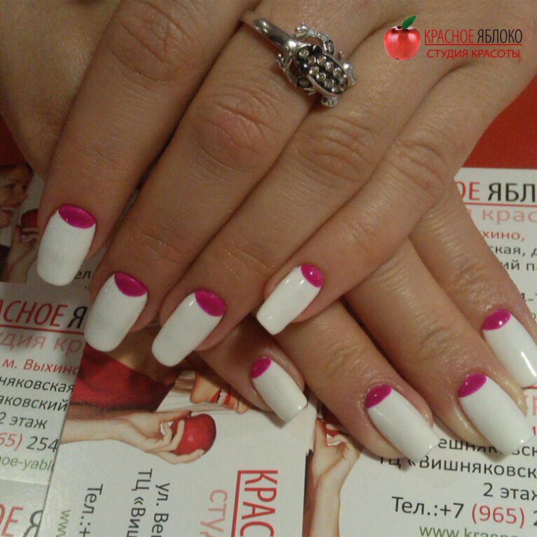 Великолепный👍 лунный маникюр🌛 белого цвета весьма выгодно смотрится🔎 на ярком розовом основании. Отличный вариант🙌 для вечернего наряда. Элегантная💍 работа мастера Гули🍎 м.Выхино