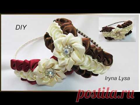 Обруч канзаші/Ободок для волос своими руками. Техника канзаши/Kanzashi tutorial